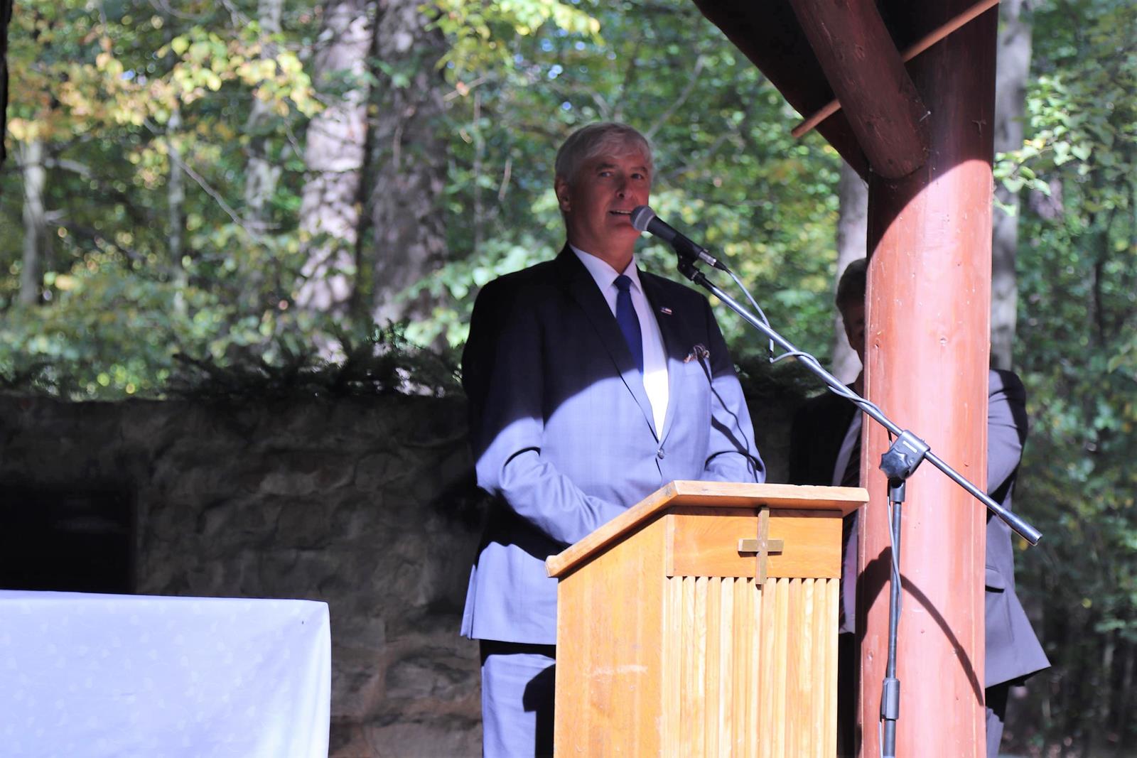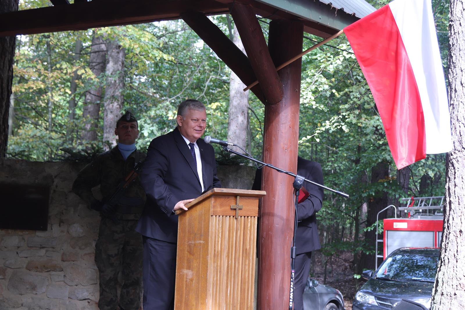 Tak będzie już zawsze. Pod koniec września każdego roku spotykamy się i będziemy się spotykali pośrodku lasu, między Przysuchą i Gielniowem w miejscu, które kiedyś było wsią z domami, budynkami gospodarczymi, ogrodami, sadami, polami i ludźmi. Przez wieki swojego istnienia wieś Stefanów niczym nie wyróżniała się od innych tego typu miejscowości w Polsce. Kiedy wybuchła II wojna światowa Stefanów stał się jednym z setek ośrodków wsparcia polskiej partyzantki. Żołnierze Armii Krajowej znajdowali tu życzliwe wsparcie, żywność, pomoc i zwykłą ludzką serdeczność. Geneza pierwszego zniszczenia Stefanowa jest nierozerwalnie związana z wybuchem Powstania Warszawskiego i sięga koncentracji Korpusu Kieleckiego AK podczas akcji „Burza”, jego marszu na pomoc walczącej Warszawie (pod kryptonimem „Zemsta”, rozwiązania i utworzenia Zgrupowania Partyzanckiego „Lasy Przysuskie” oraz niemieckiej akcji antypartyzanckiej „Waldkater”. 27 sierpnia 1944 został wstrzymany rozkazem gen Bora marsz oddziałów leśnych na odsiecz Warszawie. 18 września 1944 doszło do podporządkowania oddziałów 72 pp AK dowódcy 25 pp AK – majorowi „Leśniakowi”. Istnienie tak dużego zgromadzenia partyzanckiego na zapleczu 9 armii niemirckiej zaczęło budzić obawy o przerwanie linii komunikacyjnych wiodących z Tomaszowa Mazowieckiego, Piotrkowa i Radomia do linii frontu, w tym głównie linii kolejowych. Obawiano się również i choć może w mniejszym stopniu ataków zgrupowania partyzanckiego na tyły niemieckich wojsk frontowych i ogólnej dezorganizacji zaplecza. W ramach operacji „Waldkater” (leśny kocur) dowódca komendantury polowej nr 581 płk Gustaw Dürstein, wydał 24.09.1944 r. rozkaz uderzenia w dniu 26 września na zgromadzenie partyzanckie Lasy Przysuskie. Pod Stefanowem została stoczona całodniowa bitwa, zakończona sukcesem strony polskiej i dużymi stratami Niemców. Ale i Stefanów, i sąsiadująca wieś Budy prawie doszczętnie spłonęły. Ocalała ludność, która w porę wycofała się z partyzantami do lasu. Ocalał też dobytek, który zakopano wcześniej w dołach przy domach. Podczas akcji Niemcy we wsiach Gałki i Stefanów: aresztowali 48 osób cywilnych - Polaków, spalili 50 zagród wiejskich, uprowadzili 30 sztuk bydła. W odwet 27 września 25 p.p. spalił i wymordował wszystkich żandarmów na posterunku Przysucha w liczbie 66. Straty własne: 2 zabitych 7 rannych. Kiedy na polu bitwy w Stefanowie zapadła cisza, do spalonej wsi wrócili mieszkańcy i dzięki zgodzie Henryka Dembińskiego na wyrąb lasu mogli szybko odbudować swoje zniszczone zagrody. Niemcy po bitwie na łamach „Krakauer Zeitung" wypisali triumfalnie, że… „Banditennest Stefanow ist schon verbrannt" (Bandyckie gniazdo Stefanów zostało zniszczone), pod koniec 1945 Stefanów był już odbudowany.Minęło 7 lat od końca wojny. Naczelny wódz LWP, marszałek ZSRR Konstanty Rokossowski zarządził, aby poligon w Baryczy powiększyć o obszar puszczy Przysuskiej. Przyjechało więc wojsko i przez kilka dni wysiedlali wioski puszczańskie, Stefanów, częściowo Budy, Zapniów, Eugeniów. Ludzie tak rozpaczali i lamentowali, ze wojsko musiało ich na rozkaz wyciągać z domów i ładować siłą do samochodów. Wszystkich wysiedlili na Ziemie Odzyskane. Wtedy to traktorami i czołgami unicestwiono po raz drugi z trudem odbudowane domostwa, wyrównano teren. Wieś przestała istnieć. Ludzi, którzy pojawiali się na miejscu zniszczonej wsi zastraszano. UB, a później SB nie szczędziło trudu aby Stefanów zniknął na zawsze. Ten zamiar spełzł na niczym. Dawni partyzanci zaczęli organizować rajdy dla młodzieży, kończące się w miejscu, w którym dawniej był Stefanów. Każdy przynosił 1 kamień, który kładł pod dębem. Kiedy uskładała się ich duża ilość „Bończa” z „Puszczykiem" i „Hartem" przyjechali na to miejsce z workiem cementu. Z naskładanych kamieni zbudowali cokół, uwieńczony kotwicą – znakiem AK i Polski Walczącej. Niestety, jakiś pracownik UB z Przysuchy rozwalił cokół kowalskim młotem, a kotwicę akowską ukradł. Pamięć o Stefanowie powróciła po latach. Środowisk AK, przy wsparciu samorządu gminnego w Gielniowie i powiatowego w Przysusze zaczęła wracać pamięć o tym ważnym miejscu. Dzisiaj, po kilkunastu latach przywracania tej pamięci koniec września to czas na spotkanie w Stefanowie. Tak było i w tym roku. 29 września ok. 700 mieszkańców spotkało się w miejscu po tej leśnej wsi przy ołtarzu polowym na mszy świętej dedykowanej pamięci bohaterów. Przybyli niezawodni, jak zawsze od lat marszałek senatu Stanisław Karczewski, minister Marek Suski, europoseł Zbigniew Kuźmiuk, poseł Dariusz Bąk, radna sejmiku mazowieckiego Ewa Białecka, Starosta Marian Niemirski, wicestarosta Marek Kilianek, przewodniczący rady powiatu Krzysztof Wochniak, wójt Władysław Czarnecki, burmistrz Tomasz Matlakiewicz, wójt Robert Fidos, wójt Andrzej Wesołowski, wójt Marek Klimek, wójt Marian Kmieciak, komendanci Policji i Państwowej Straży Pożarnej z Przysuchy, kombatanci reprezentujący środowiska żołnierzy AK, żołnierze z radomskiego garnizonu, oraz najważniejsi goście – mieszkańcy powiatu przysuskiego. Uroczystość rozpoczęła się po godz. 11.00 Występem męskiego chóru parafialnego z Opoczna. Następnie o 12.00 rozpoczęła się polowa msza św. O 13.15 z przemówieniami wystąpili: marszałek Stanisław Karczewski, który nawiązywał do tradycji walki o niepodległość i roli kościoła w budowie narodu polskiego. Pan Marszałek podkreślał konieczność stałego dbania o bezpieczeństwo. Bez zapewnienia bezpieczeństwa nie ma rozwoju Polski. Mówił również o znaczeniu bohaterstwa żołnierzy spod Stefanowa dla zachowania pamięci narodowej. Jako drugi wystąpił minister Marek Suski, który powiedział o wielkim wkładzie patriotów w budowę Polski