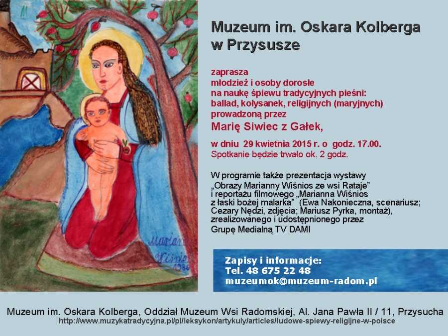 Muzeum im. Oskara Kolberga serdecznie zaprasza na warsztaty śpiewu tradycyjnego z Marią Siewiec – śpiewaczką ludową z Gałek Rusinowskich.