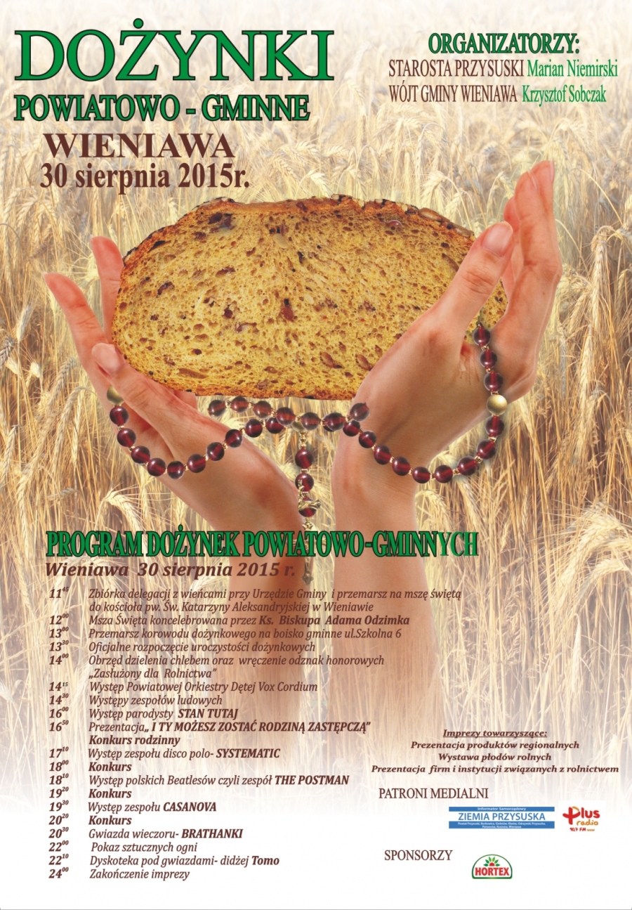 Serdecznie zapraszamy na Dożynki Powiatowo-Gminne do Wieniawy, które odbędą się 30 sierpnia.