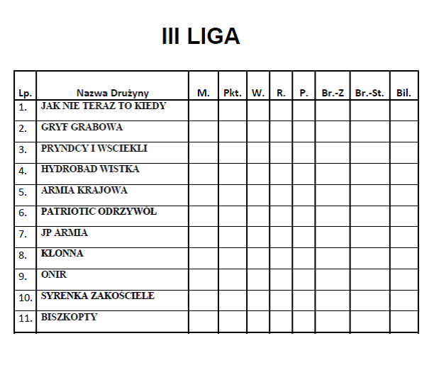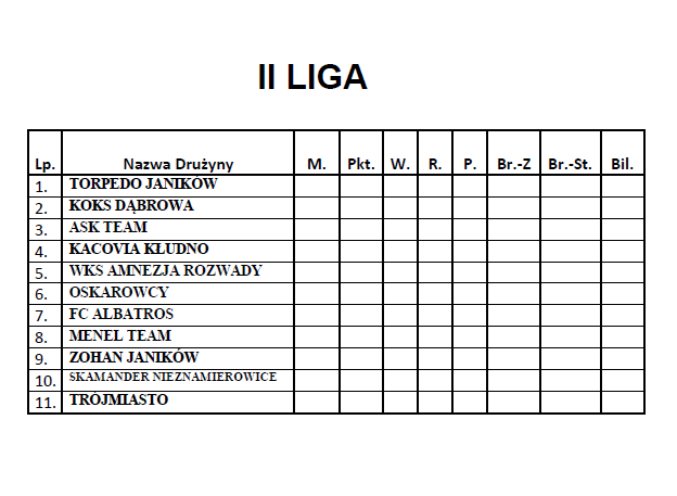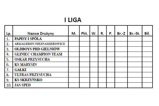 Tabele I, II, III ligi piłki nożnej halowej