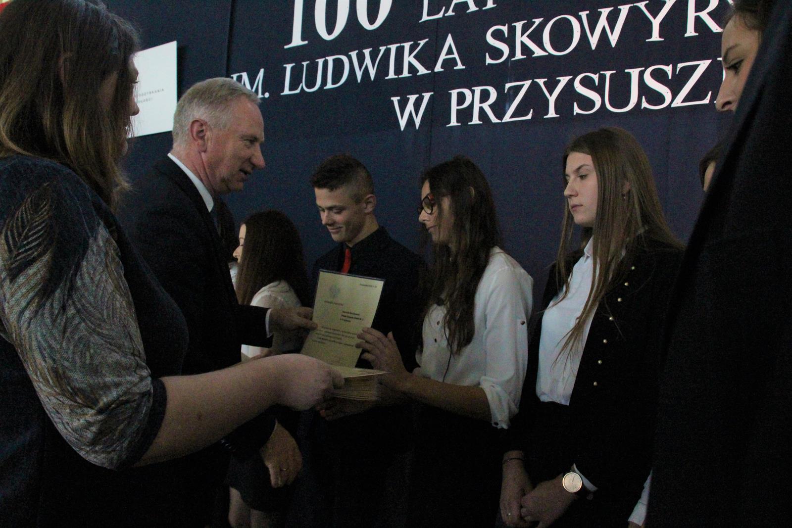 8.11.2018 roku jubileusz 100 -lecia obchodził Zespół Szkół nr 2 im. Ludwika Skowyry w Przysusze. Uroczystości rozpoczęły się od mszy w kościele św. Jana Nepomucena w Przysusze koncelebrowanej przez biskupa Henryka Tomasika, Ordynariusza Diecezji Radomskiej, który modlił się w intencji szkoły oraz ojczyzny. Podczas mszy biskup poświęcił nowy sztandar szkoły na którym zamieszczono godło państwowe oraz portret Ludwika Skowyry założyciela szkoły.