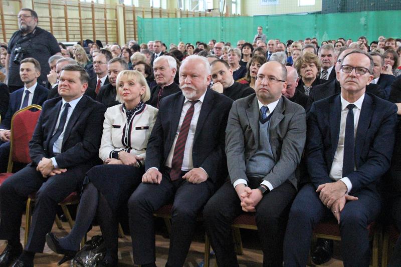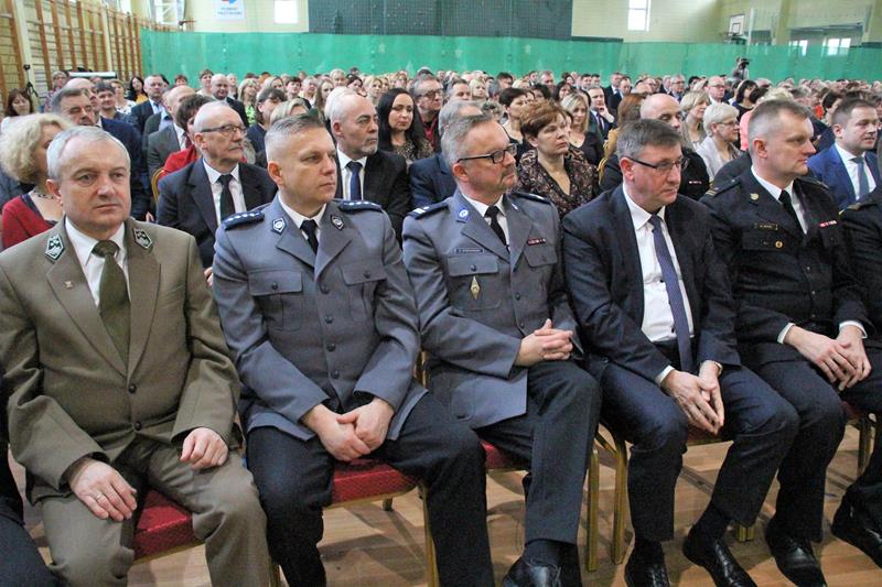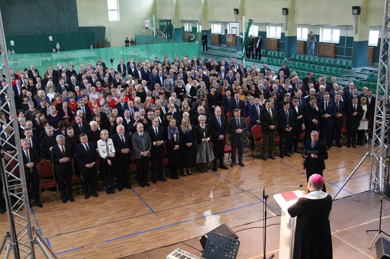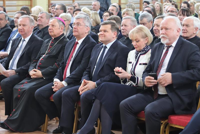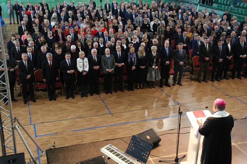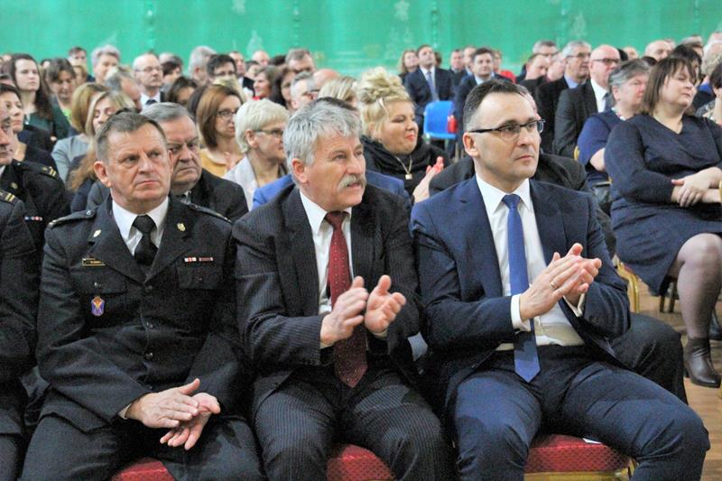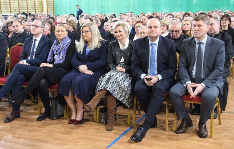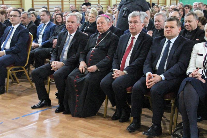 Następnie głos zabrał Marszałek Senatu RP Stanisław Karczewski, który dziękował samorządowcom za ich codzienny trud na rzecz lokalnych społeczności. (…) Polska jest jedna, Polska jest piękna. Jestem z tego bardzo dumny i nie żałuję, że zrezygnowałem z wykonywania zawodu lekarza, chirurga. Dzisiaj mam wielką satysfakcję, że mogę działać na rzecz naszego kraju. Dzisiaj ważne jest, abyśmy zwracali uwagę na rodziny, bo wówczas silna będzie Polska (…) dodaje Marszałek RP. Jako ostatni głos zabrał ks. bp Henryk Tomasik- (…)My jako duszpasterze nie chcemy być posłami, czy ministrami, ale chcemy pokazywać Chrystusa. Życzę odwagi w realizowaniu tego co jest prawdziwe, dobre i piękne, w budowaniu siebie i innych w duchu Ewangelii. Niech dobro wspólne łączy wszystkich. Pomyślmy także o człowiekowi, który doświadczył nienawiści, bo nikomu nie wolno podnosić ręki na drugiego człowieka (…). Tymi słowami biskup zakończył przemówienie i udzielił błogosławieństwa. Pierwszą część spotkania zakończył koncert Haliny Frąckowiak, która wystąpiła z kwartetem smyczkowym. Po zakończonym koncercie goście zebrali się przy wspólnym poczęstunku przygotowanym przez uczniów i nauczycieli klas gastronomicznych Zespołu Szkół nr 2 im. Ludwika Skowyry.