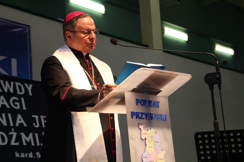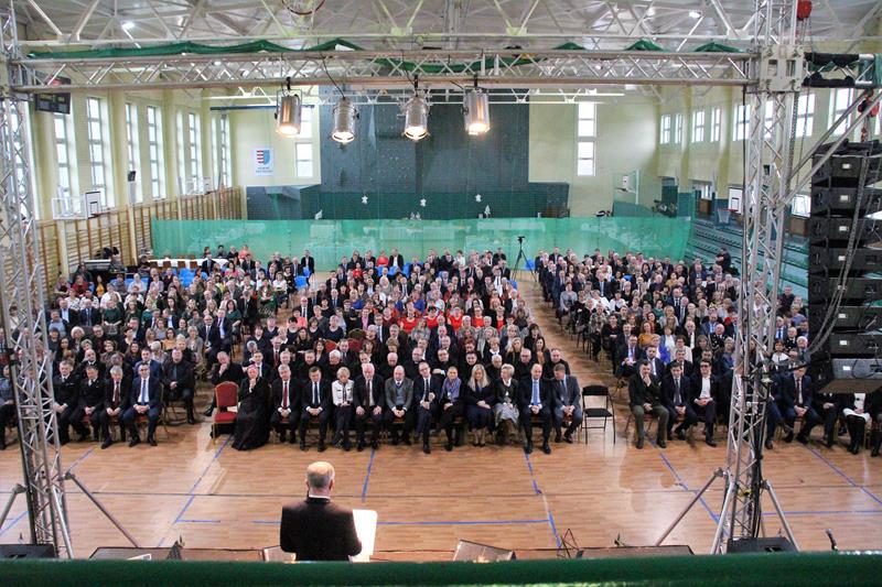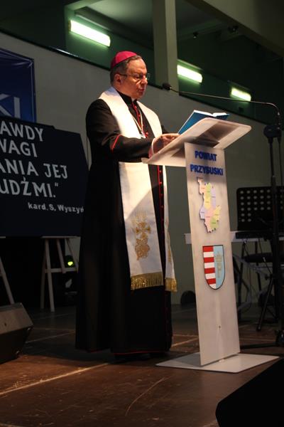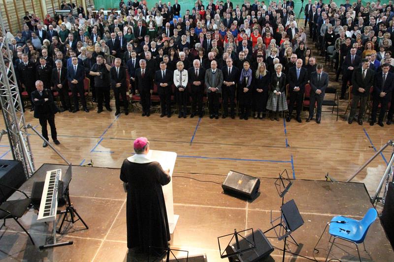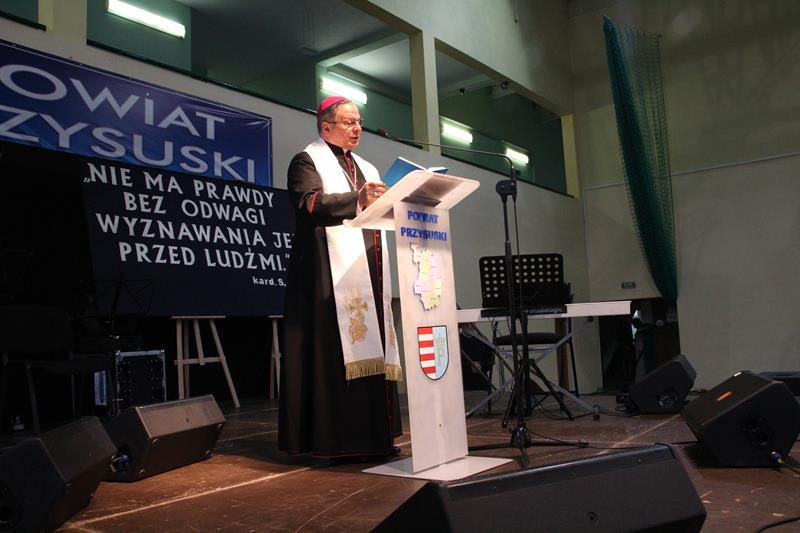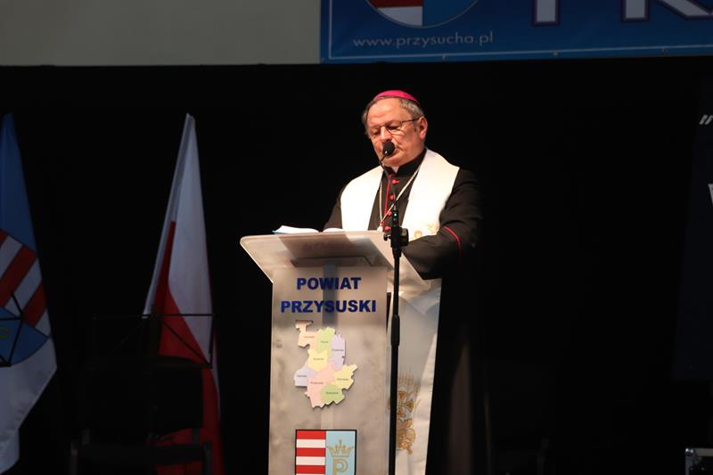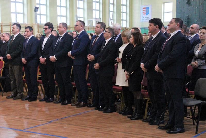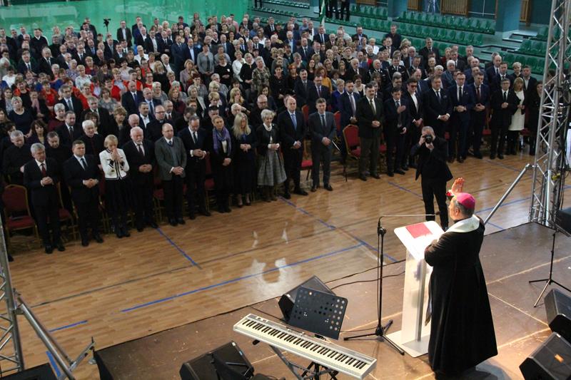 Następnie głos zabrał Marszałek Senatu RP Stanisław Karczewski, który dziękował samorządowcom za ich codzienny trud na rzecz lokalnych społeczności. (…) Polska jest jedna, Polska jest piękna. Jestem z tego bardzo dumny i nie żałuję, że zrezygnowałem z wykonywania zawodu lekarza, chirurga. Dzisiaj mam wielką satysfakcję, że mogę działać na rzecz naszego kraju. Dzisiaj ważne jest, abyśmy zwracali uwagę na rodziny, bo wówczas silna będzie Polska (…) dodaje Marszałek RP. Jako ostatni głos zabrał ks. bp Henryk Tomasik- (…)My jako duszpasterze nie chcemy być posłami, czy ministrami, ale chcemy pokazywać Chrystusa. Życzę odwagi w realizowaniu tego co jest prawdziwe, dobre i piękne, w budowaniu siebie i innych w duchu Ewangelii. Niech dobro wspólne łączy wszystkich. Pomyślmy także o człowiekowi, który doświadczył nienawiści, bo nikomu nie wolno podnosić ręki na drugiego człowieka (…). Tymi słowami biskup zakończył przemówienie i udzielił błogosławieństwa. Pierwszą część spotkania zakończył koncert Haliny Frąckowiak, która wystąpiła z kwartetem smyczkowym. Po zakończonym koncercie goście zebrali się przy wspólnym poczęstunku przygotowanym przez uczniów i nauczycieli klas gastronomicznych Zespołu Szkół nr 2 im. Ludwika Skowyry.