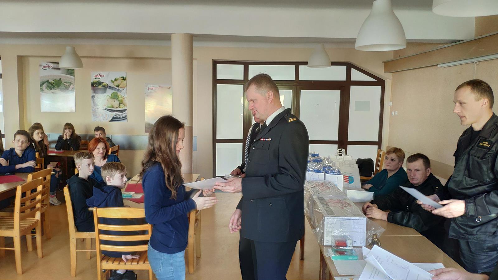 W/w osoby otrzymały nagrody w postaci power banków, głośników przenośnych oraz radiomagnetofonów, natomiast pozostali uczestnicy turnieju pamiątkowe dyplomy. Tradycyjnie nagrodą uhonorowano także najmłodszego uczestnika turnieju tj. Wiktorię Stefańską z Publicznej Szkoły Podstawowej w Skrzyńsku. Nagrody wręczali: mł. bryg. Marcin Sokół – Komendant Powiatowy PSP w Przysusze, Dh Robert Siudek Wice Prezes Zarządu Oddziału Powiatowego ZOSP w Przysusze. Nagrody i upominki ufundowali włodarze samorządu powiatowego oraz samorządów gminnych, Nadleśnictwo Przysucha i Mazowiecki Komendant Wojewódzki Państwowej Straży Pożarnej. Osoby które zajęły pierwsze miejsca w każdej grupie wiekowej zakwalifikowały się na eliminacje wojewódzkie które odbędą się 27 kwietnia 2019 r. w Mrokowie ( gmina Lesznowola). W trakcie zmagań uczestnicy mogli poczęstować się słodkościami przygotowanymi dla nich przez Zarząd Powiatowy ZOSP. Na zakończenie konkursu dla wszystkich uczestników turnieju oraz ich opiekunów podano pyszny obiad w stołówce Zespołu Szkół Nr 2 im. Ludwika Skowyry w Przysusze.