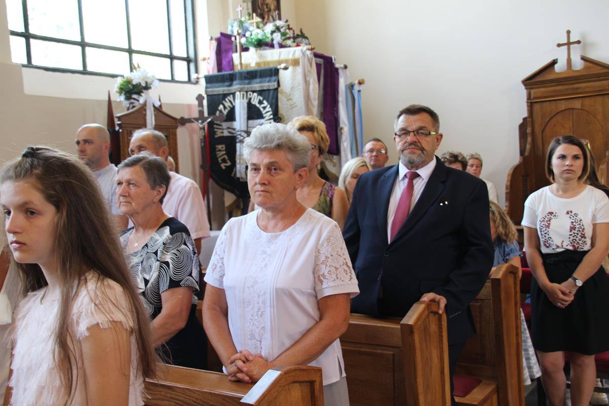Tuż po zakończeniu mszy św. uformował się korowód dożynkowy który w asyście orkiestry dętej udał się na boisko gminne na świecką część uroczystości, gdzie odbyły się przemowy gospodarza uroczystości oraz zaproszonych gości.