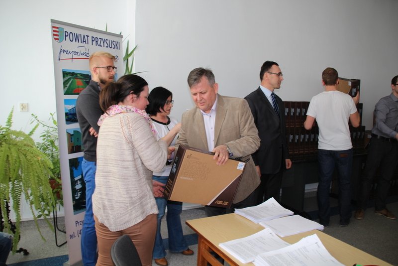 3 kwietnia na sali konferencyjnej Starostwa Powiatowego w Przysusze władze powiatowe rozdały pierwsze laptopy dla grupy 80 osób z Gminy i Miasta Przysucha.