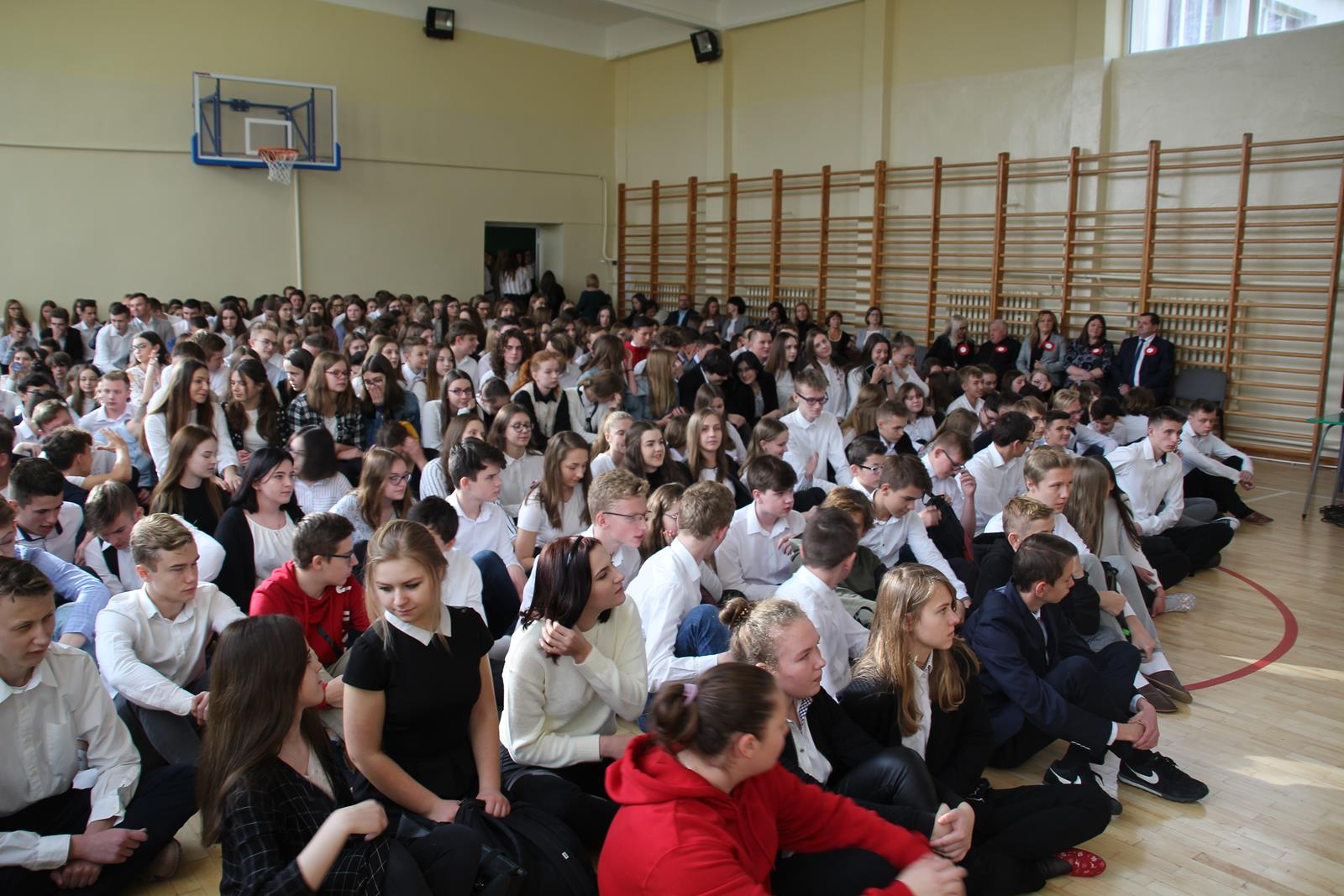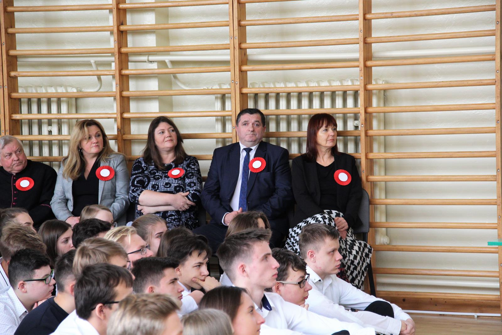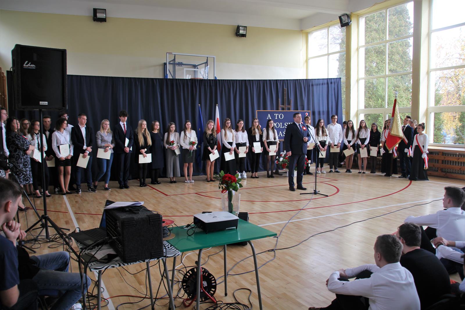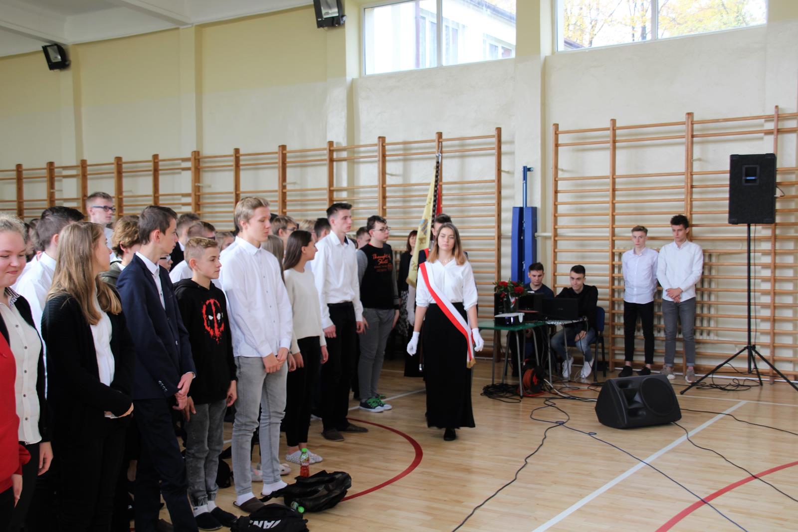 Pierwszą część uroczystości rozpoczęła akademia z okazji 101 rocznicy Odzyskania Niepodległości przez Polskę. Młodzież zaprezentowała dążenia Polski do niepodległości poprzez śpiew, recytację oraz pokaz multimedialny.
