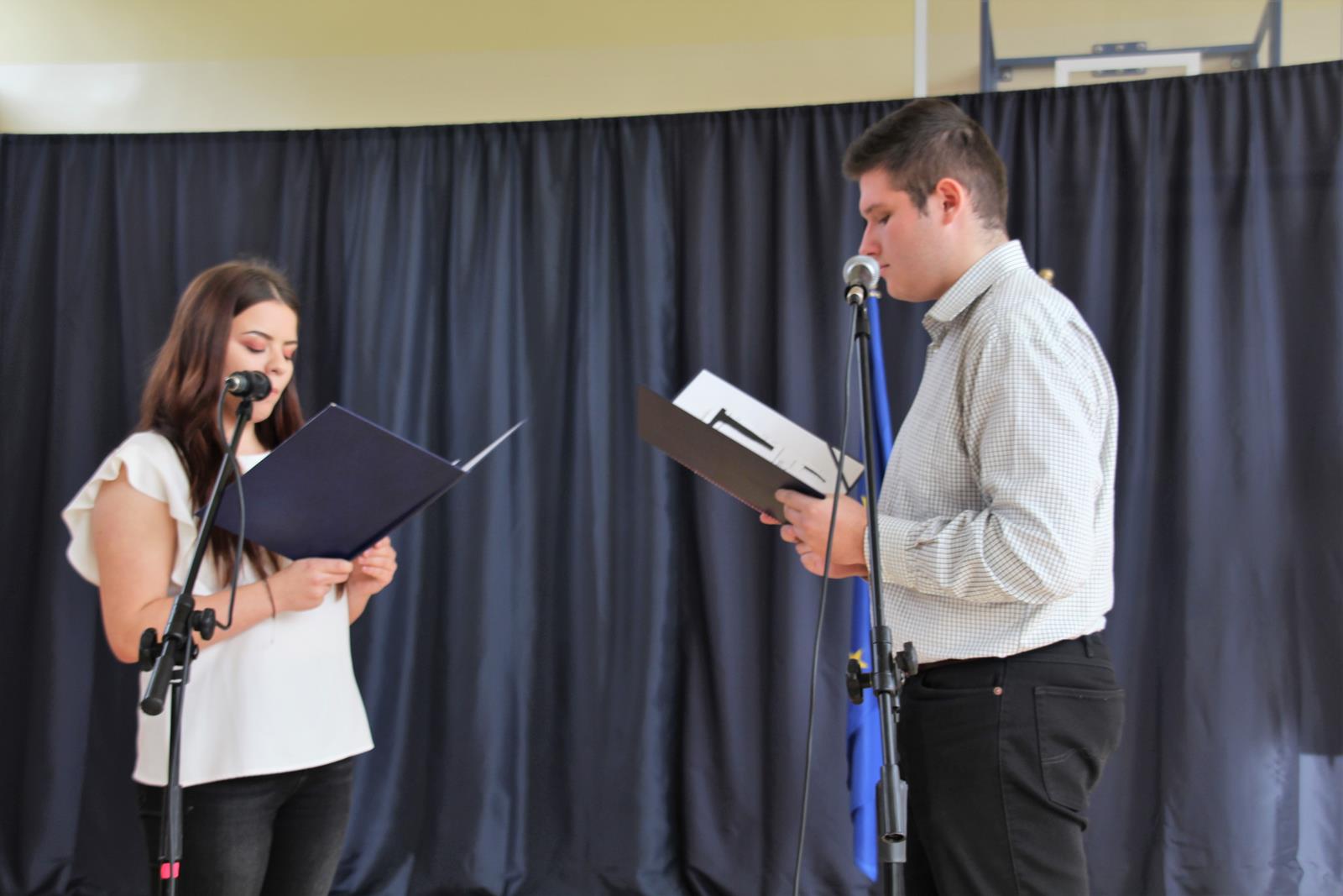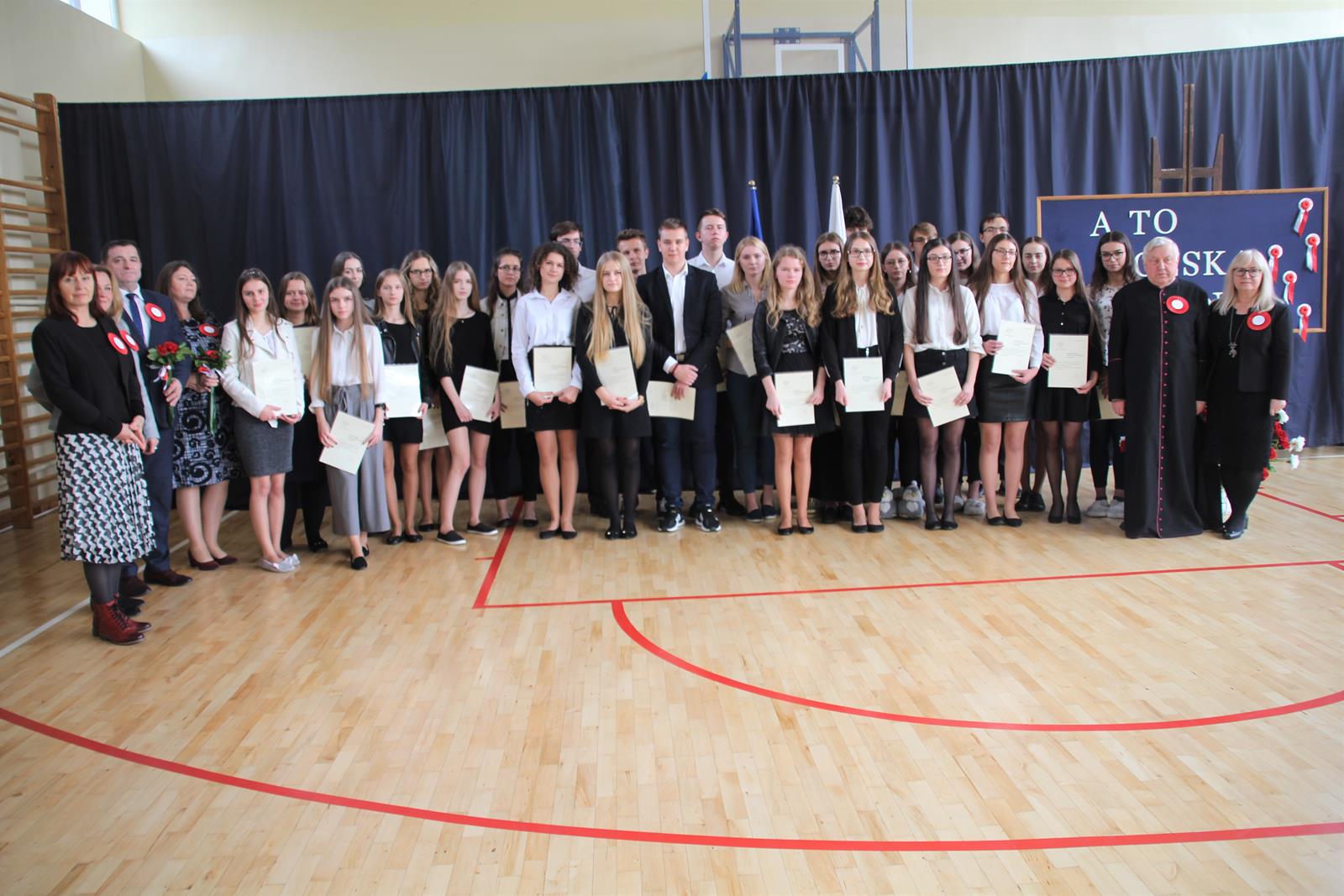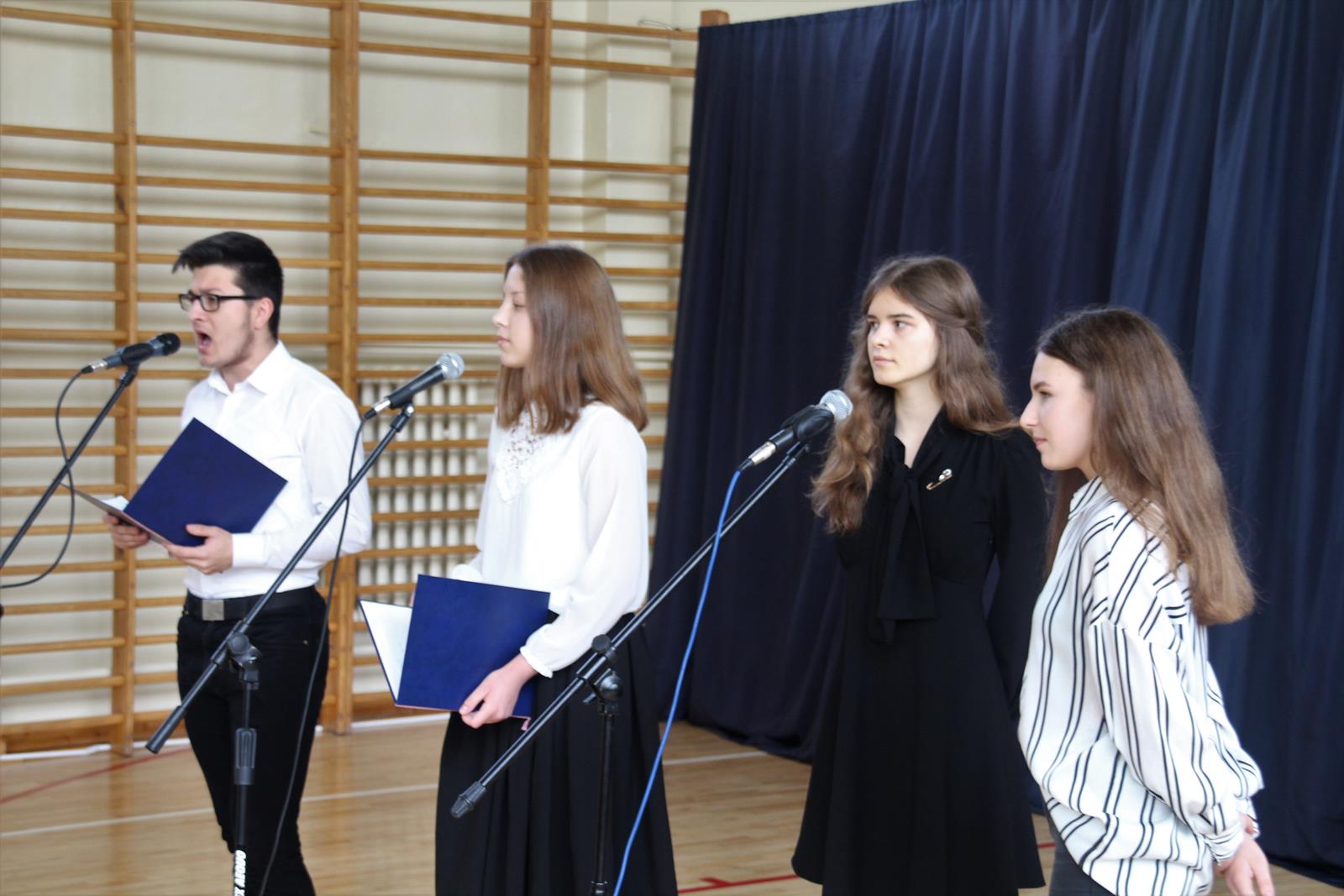 Pierwszą część uroczystości rozpoczęła akademia z okazji 101 rocznicy Odzyskania Niepodległości przez Polskę. Młodzież zaprezentowała dążenia Polski do niepodległości poprzez śpiew, recytację oraz pokaz multimedialny.