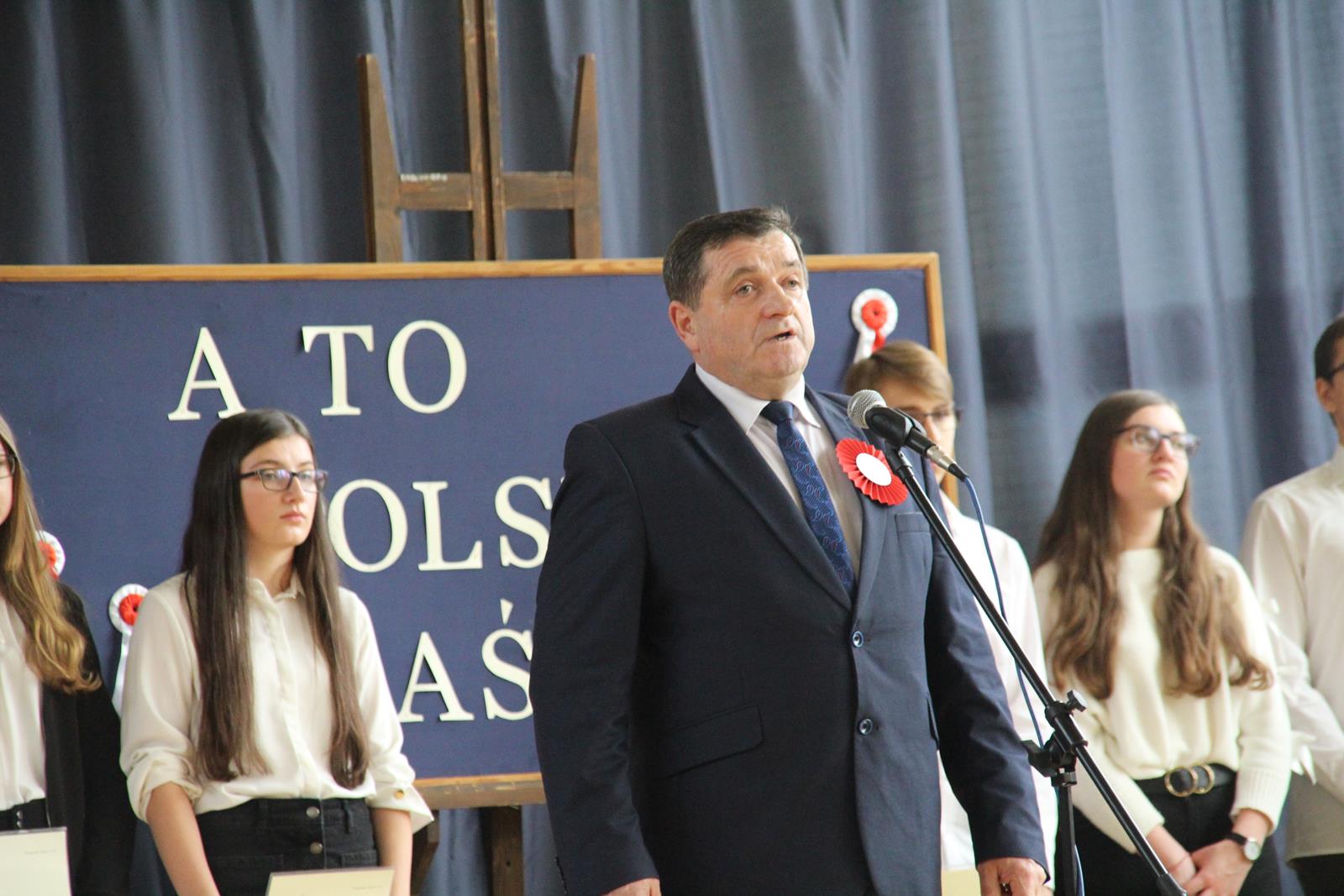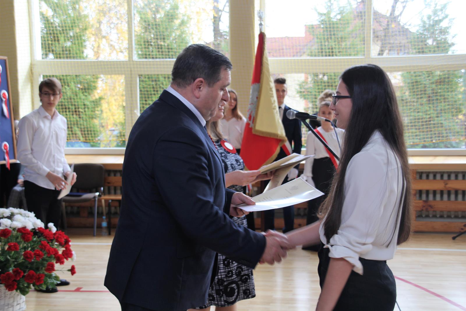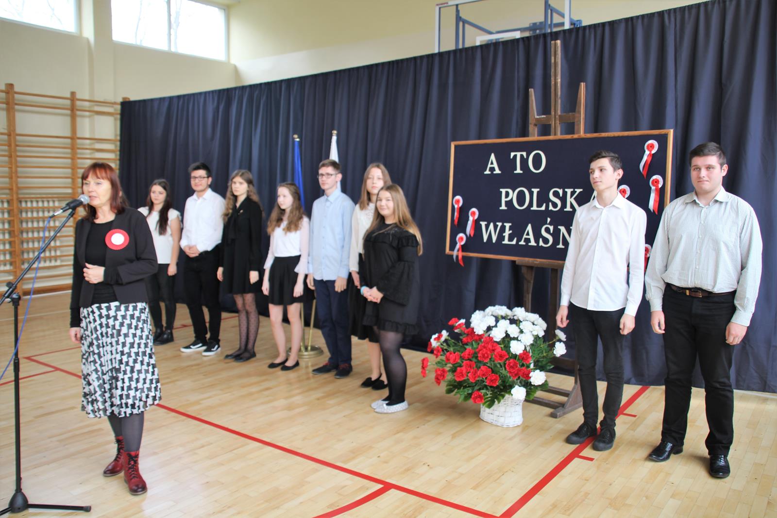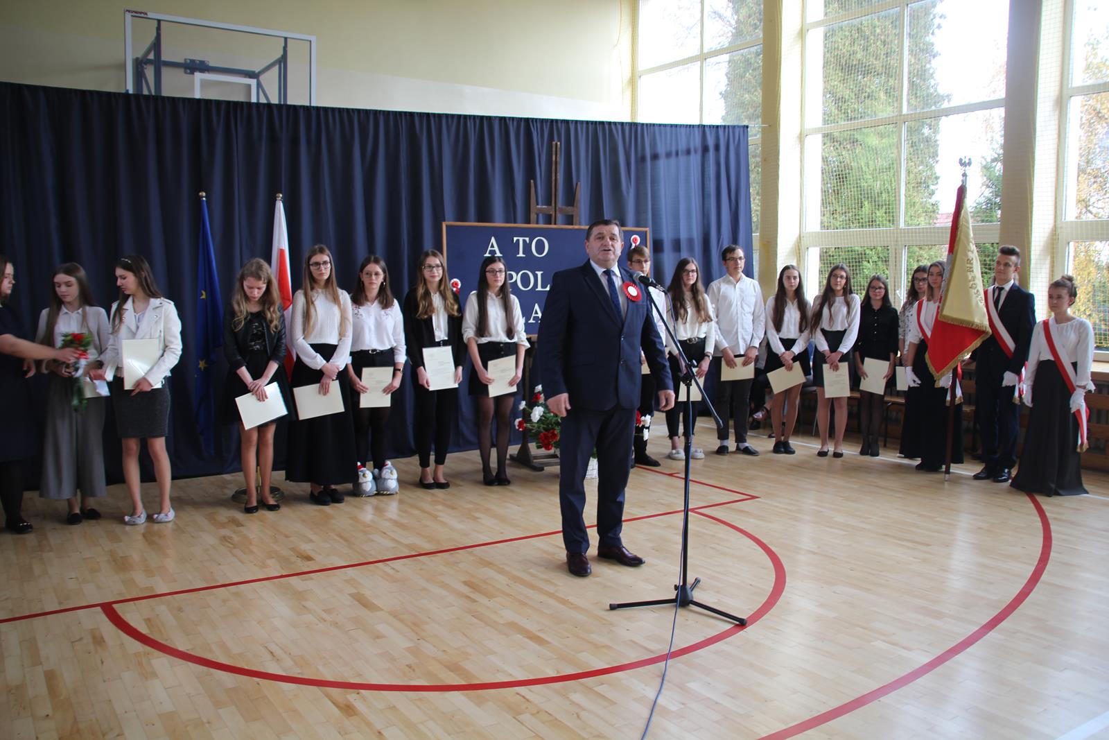 Pierwszą część uroczystości rozpoczęła akademia z okazji 101 rocznicy Odzyskania Niepodległości przez Polskę. Młodzież zaprezentowała dążenia Polski do niepodległości poprzez śpiew, recytację oraz pokaz multimedialny.