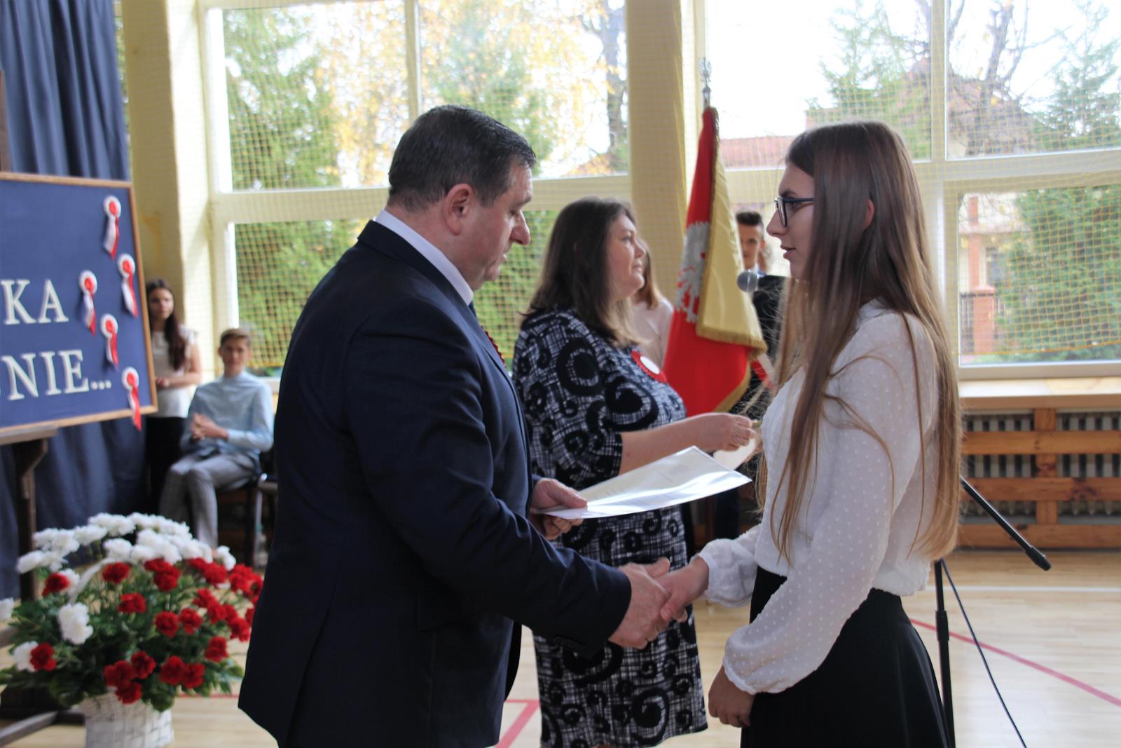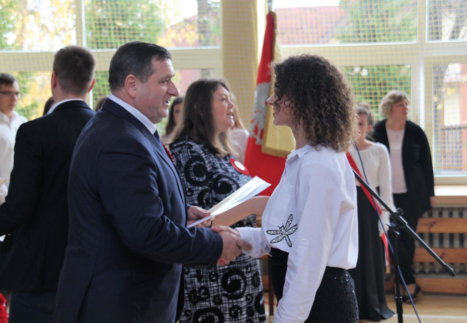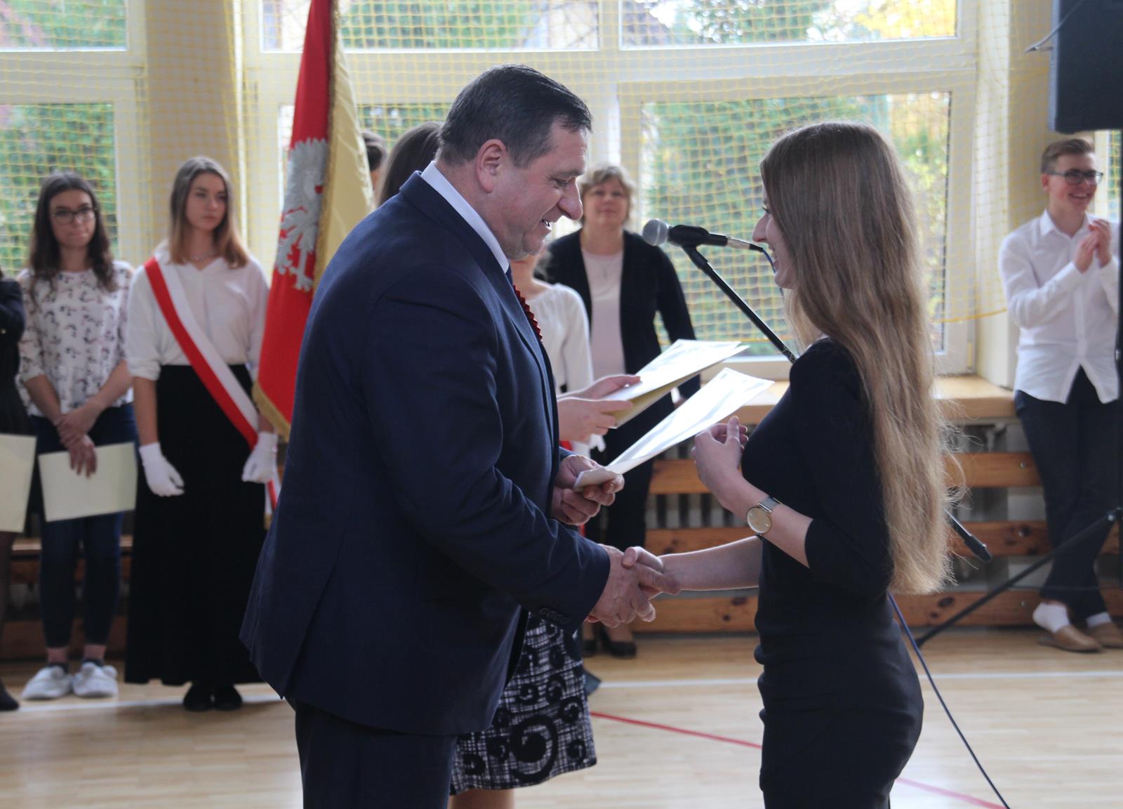 Podczas drugiej części wicestarosta Marek Kilianek oraz kierownik Wydziału Edukacji Starostwa Powiatowego w Przysusze Luiza Kozłowska wręczyli stypendia starosty dla najzdolniejszej młodzieży. W tym roku stypendia otrzymało 31 uczniów.