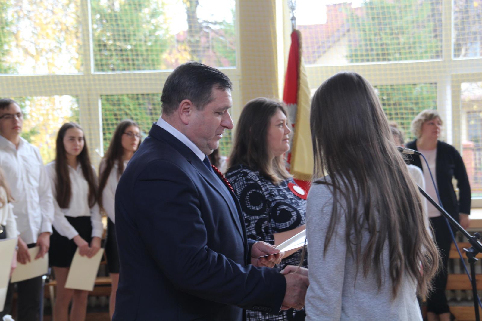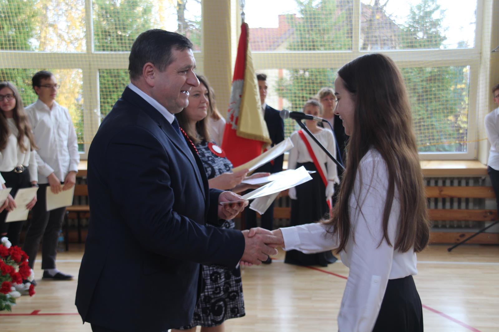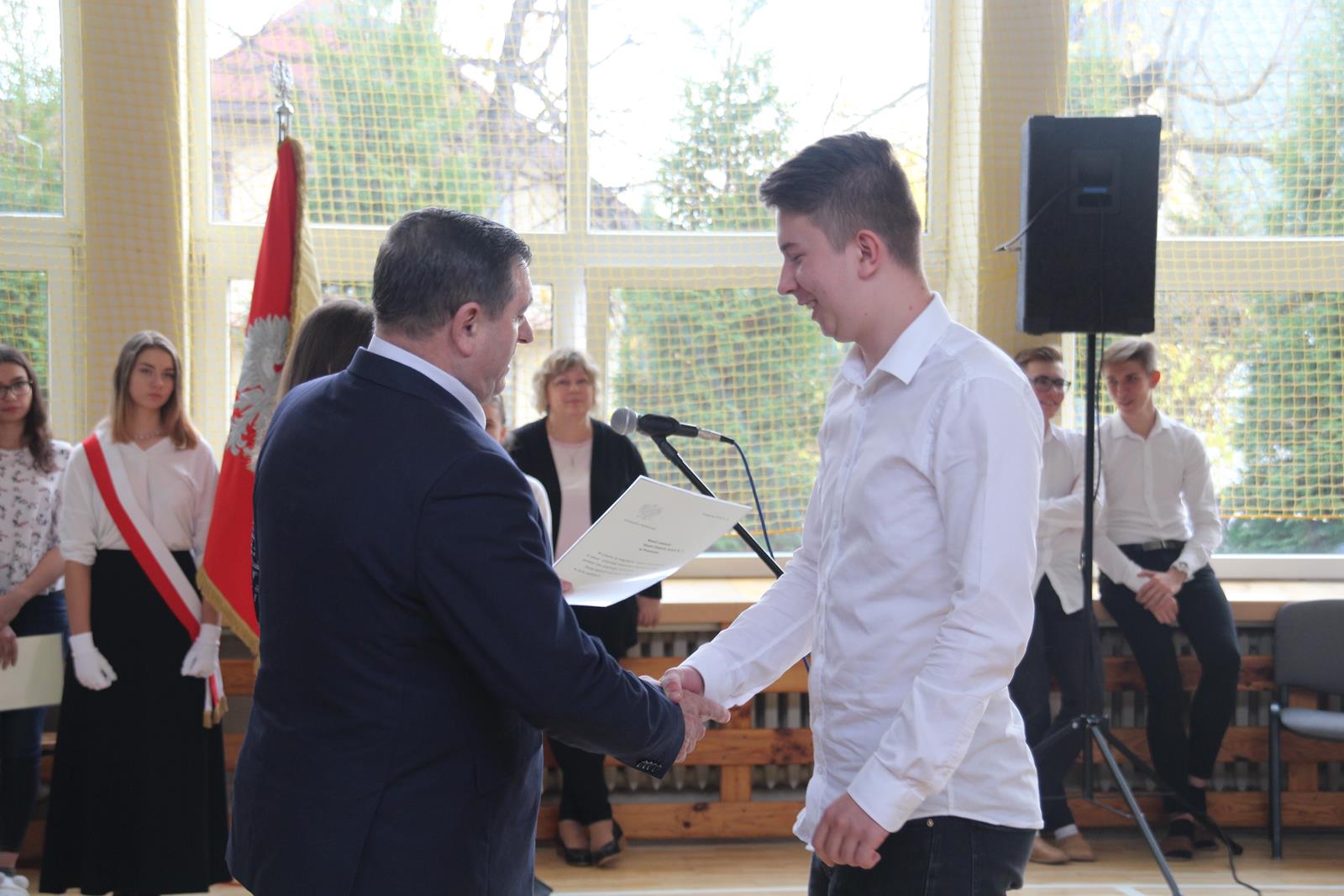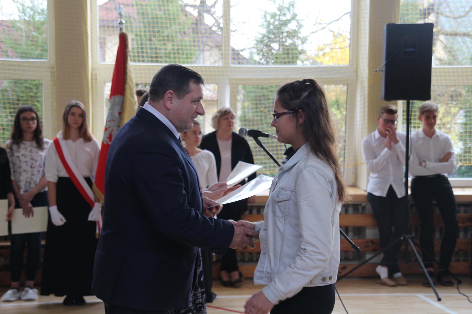 Podczas drugiej części wicestarosta Marek Kilianek oraz kierownik Wydziału Edukacji Starostwa Powiatowego w Przysusze Luiza Kozłowska wręczyli stypendia starosty dla najzdolniejszej młodzieży. W tym roku stypendia otrzymało 31 uczniów.