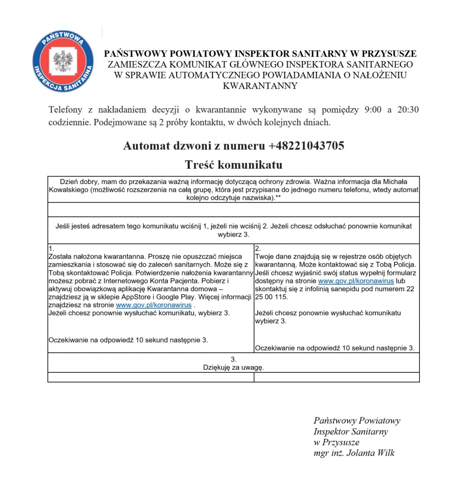 Sanepid informuje