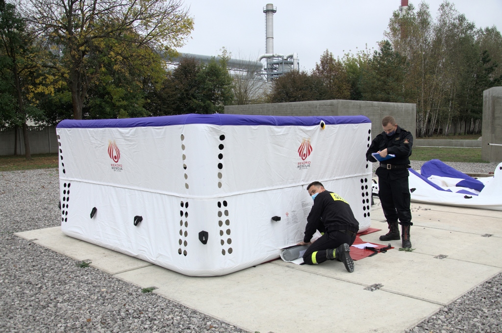 W miesiącu grudniu zakupiony został pneumatyczny namiot ratowniczy GTX 38 z przeznaczeniem na potrzeby ewakuacji osób między innymi podczas zdarzeń masowych, zabezpieczenia logistycznego akcji oraz działań związanych z Covid-19. Powierzchnia namiotu wynosi 34 m2. Wartość zakupu 35 tys.zł. Środki finansowe pochodziły z KW PSP