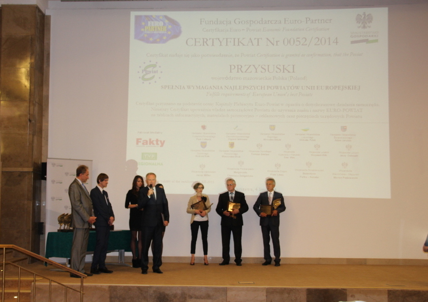 W piątek 4 lipca w Ministerstwie Gospodarki Starosta Przysuski Marian Niemirski odebrał z rąk Wiceministra Gospodarki Jerzego Pietrewicza oraz Prezesa Fundacji Gospodarczej Euro-Partner Pawła Przybysławskiego Nagrodę Gospodarczą Euro-Powiat podczas II Ogólnopolskiego Plebiscytu „Euro-Powiat”. Powyższa nagroda przyznawana jest na podstawie oceny Kapituły, w oparciu o dotychczasowe działania samorządu. Nagrodę otrzymują podmioty, które uznawane są za wzorowo zarządzane i należą do godnych zaufania. Certyfikat nadaje się jako potwierdzenie, że Powiat Przysuski spełnia wymagania najlepszych Powiatów Unii Europejskiej.