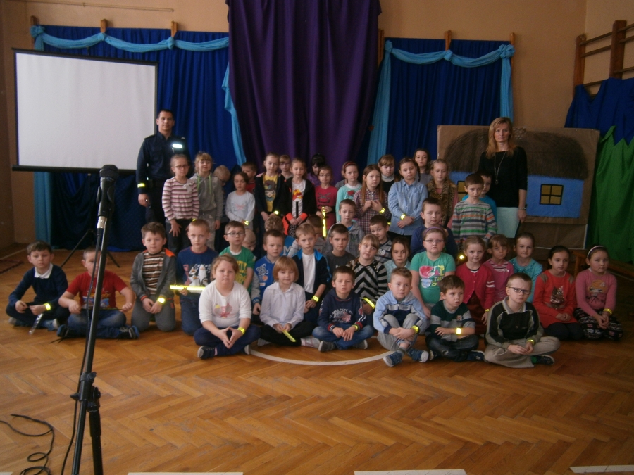 Podczas spotkania funkcjonariusz rozmawiał z młodzieżą na temat ich bezpieczeństwa podczas wypoczynku zimowego, przekazał uczniom niezbędną wiedzę jak należy zachowywać się w trudnych, grożącym niebezpieczeństwem sytuacjach na drogach. W kolejnym etapie spotkania uczniowie dowiedzieli się, jak ważną rolę w bezpieczeństwie odgrywają elementy odblaskowe, które dają szansę i mogą uratować życie. Na zakończenie spotkania najmłodsi otrzymali elementy odblaskowe, które mają zwiększyć ich bezpieczeństwo podczas wspólnych wyjazdów na wycieczki oraz wyjścia poza teren szkoły.