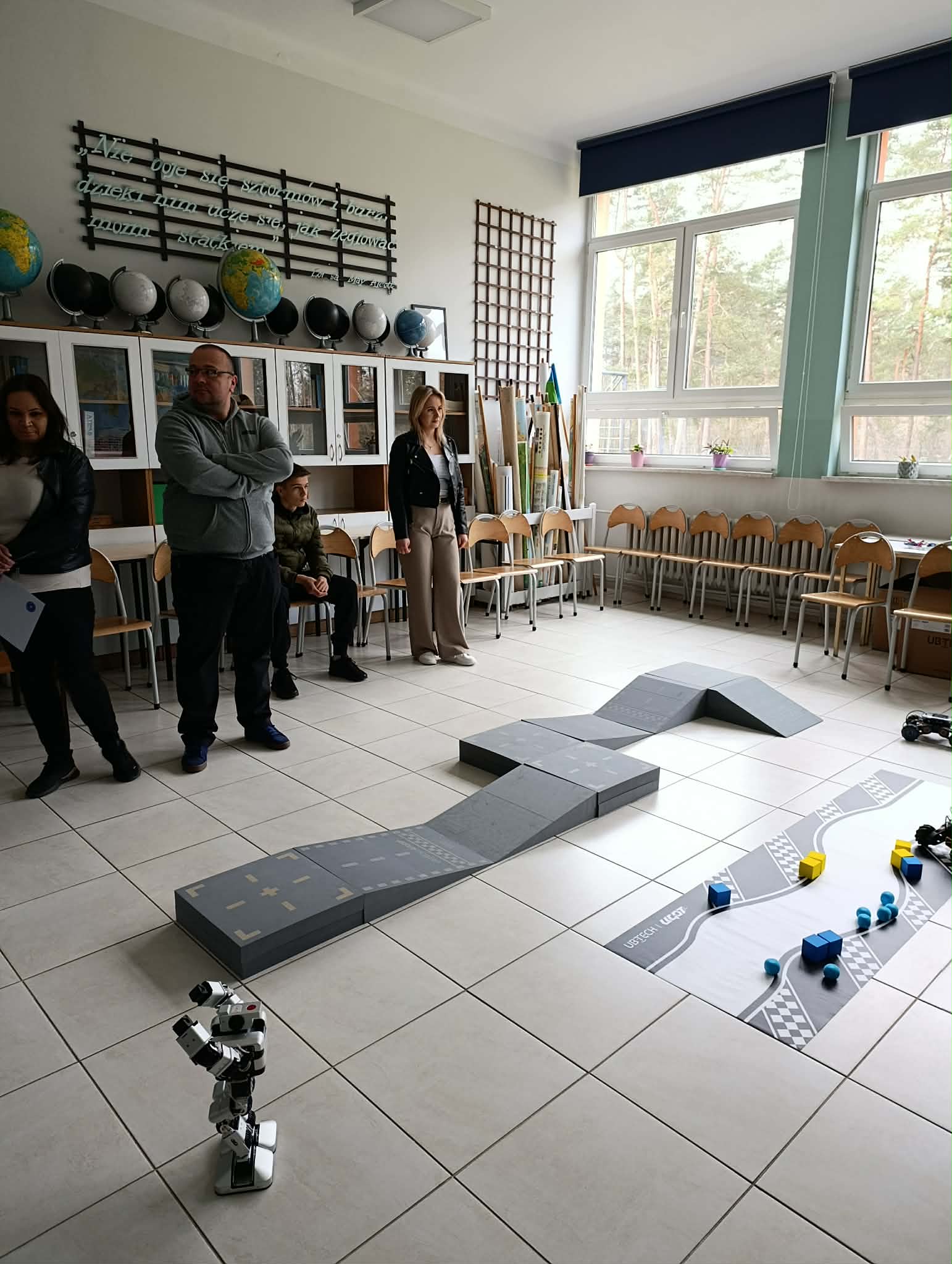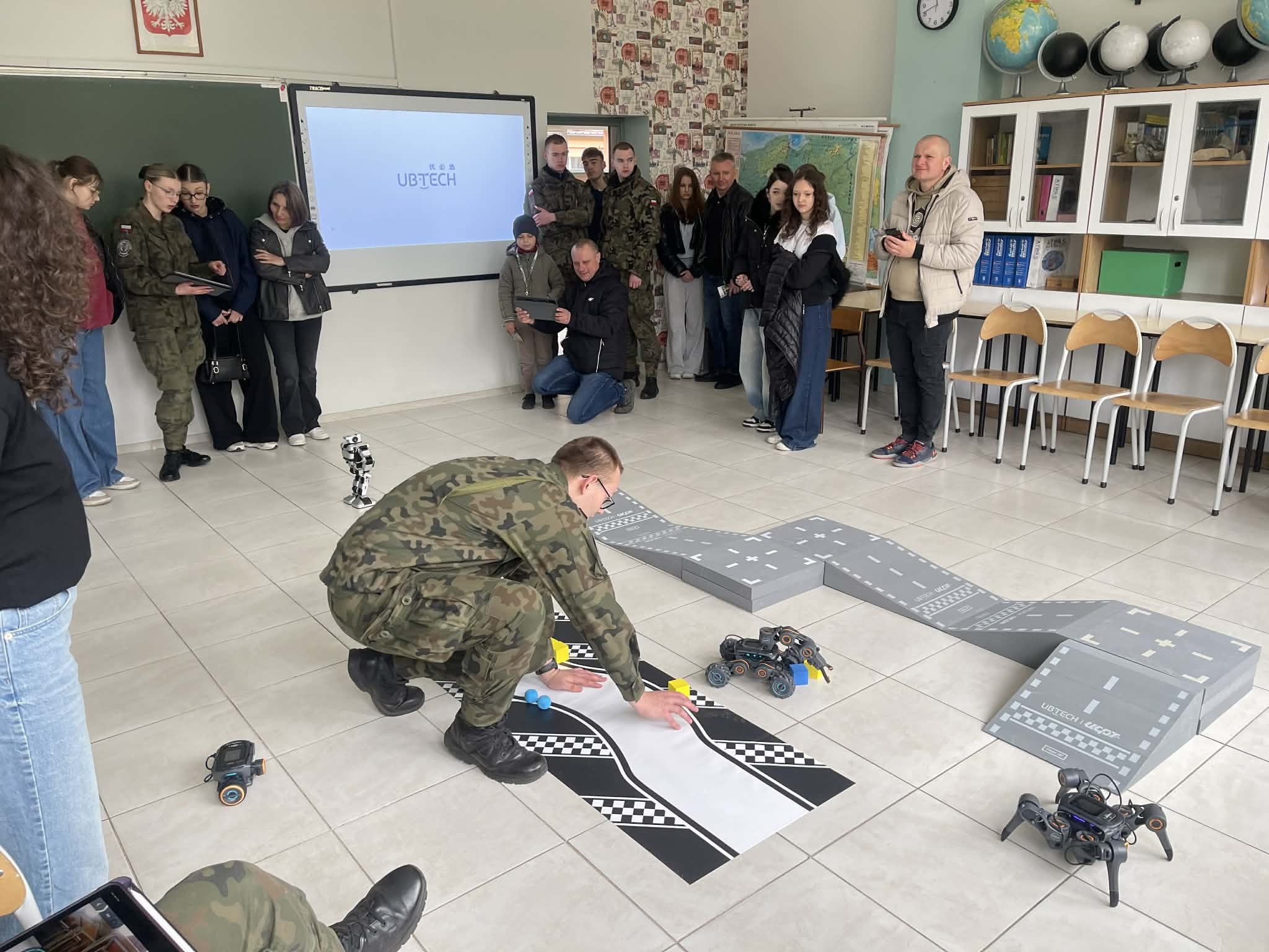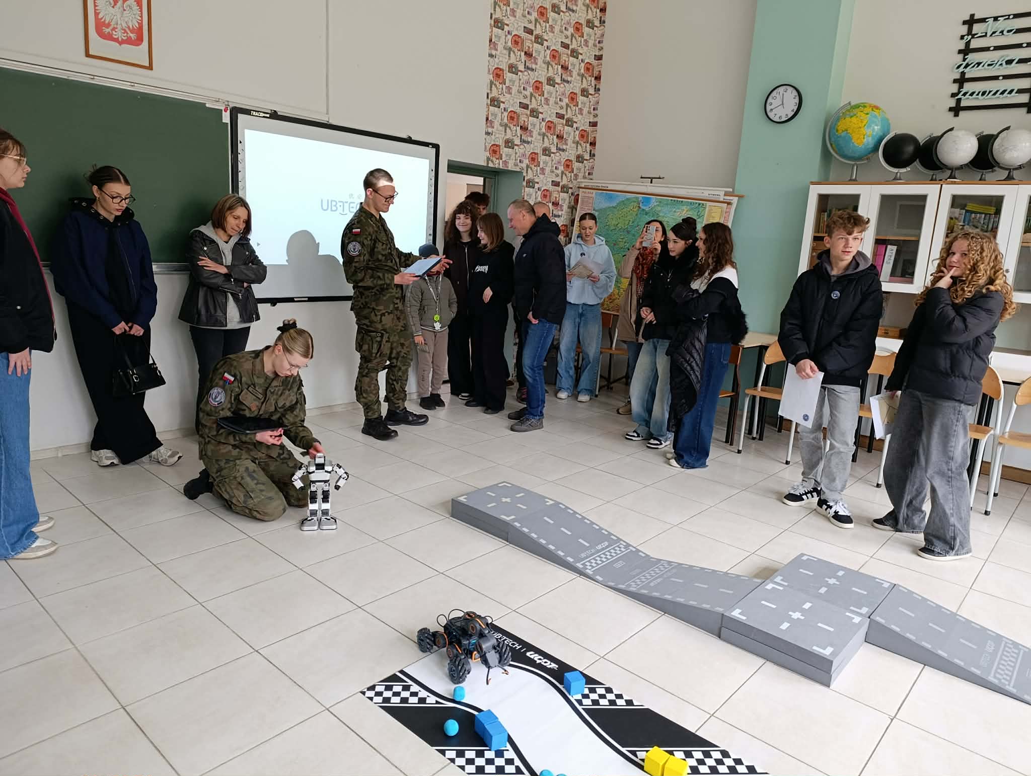 Dużym zainteresowaniem cieszył się kącik robotyki UGOT, w którym młodzież sterowała robotami za pomocą aplikacji, wydawała im polecenia oraz pokonywała przygotowane tory przeszkód o różnym stopniu trudności.