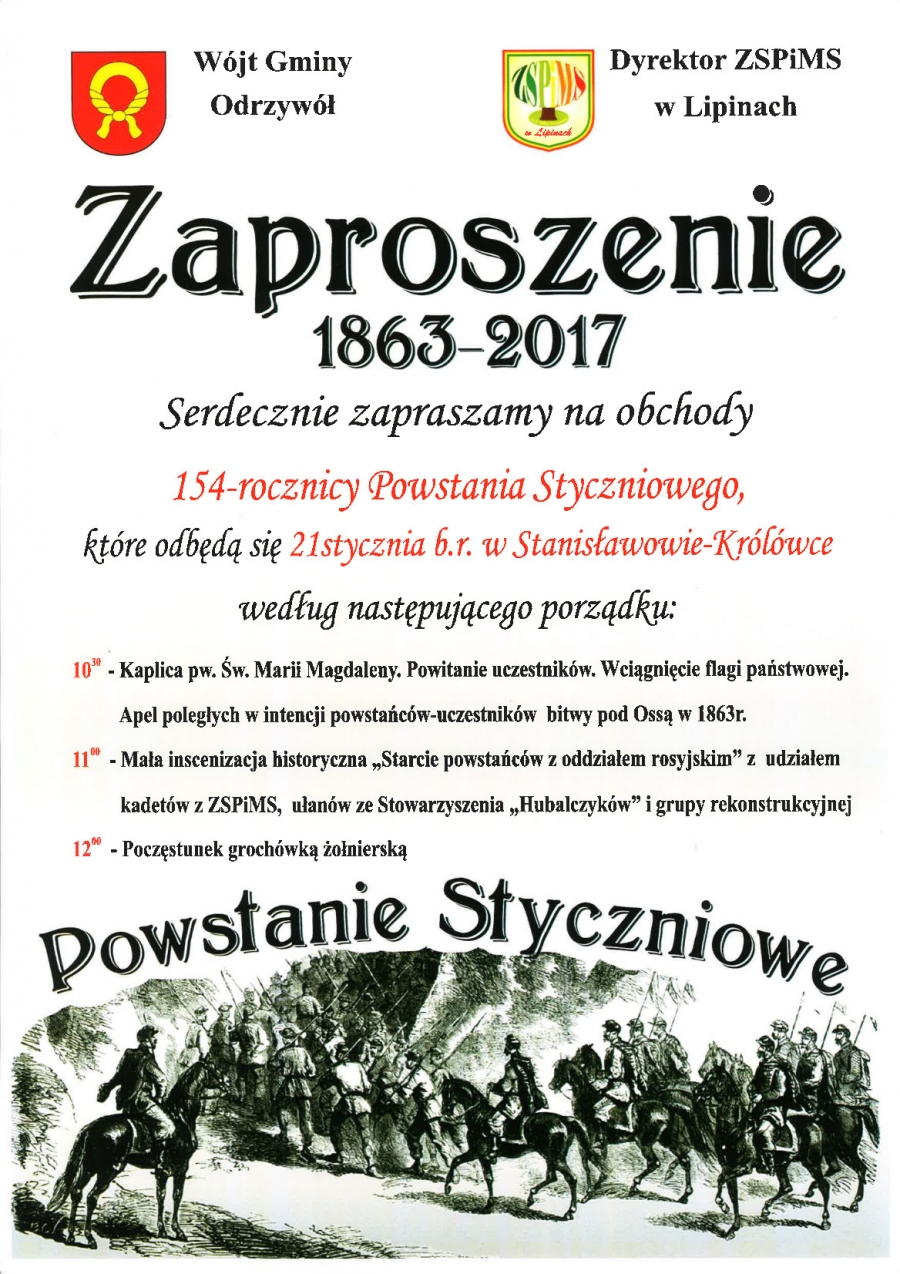 Zaproszenie na obchody 154-rocznicy Powstania Styczniowego