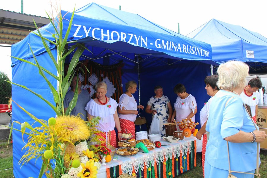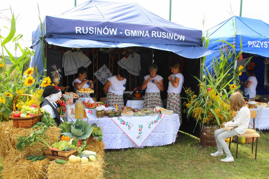Uroczystości rozpoczęły się mszą świętą w intencji rolników, po której korowód dożynkowy przemaszerował na boisko gminne. Dalszym punktem programu było przywitanie zaproszonych gości i mieszkańców gminy przez Wójta Gminy Rusinów Krzysztofa Urbańczyka oraz okolicznościowe przemówienia między innymi Posła Dariusza Bąka i Starosty Mariana Niemirskiego. Część oficjalna zakończyła się symbolicznym dzieleniem chleba, a na scenie pojawiły się zespoły ludowe. Na uczestników dożynek czekały syto zastawione stoły w namiotach stowarzyszeń i kół gospodyń wiejskich oraz moc atrakcji dla dzieci. W dalszej części programu wystąpiły zespoły disco polo, a zabawa trwała do późnych godzin nocnych.